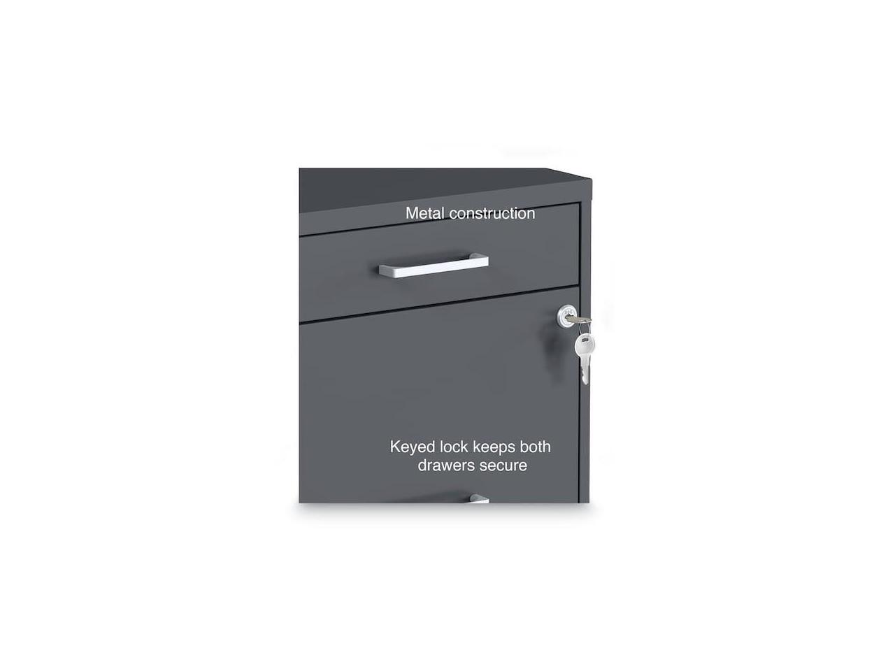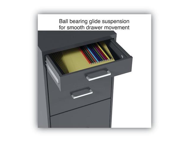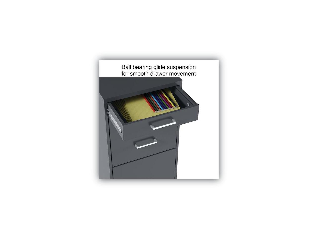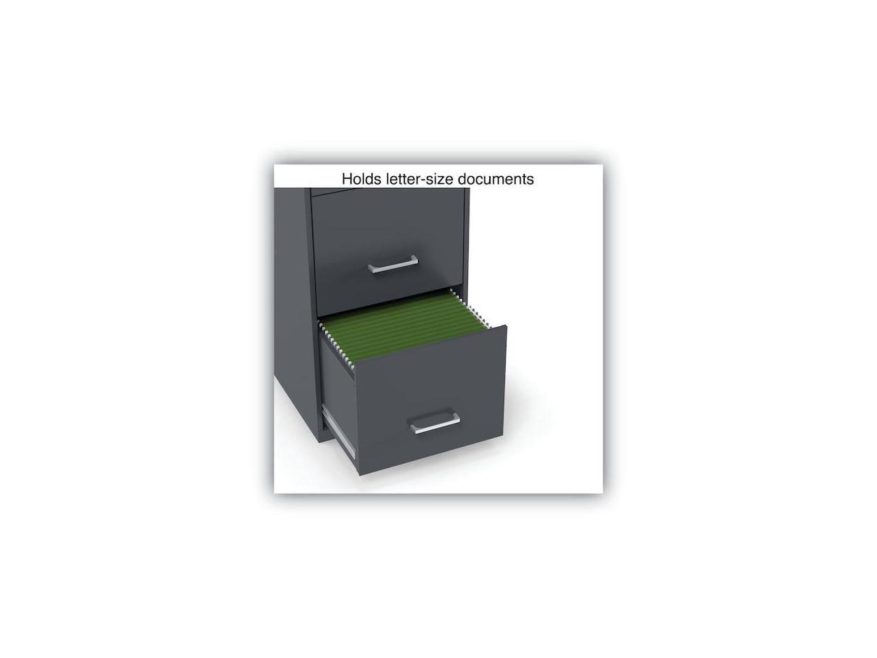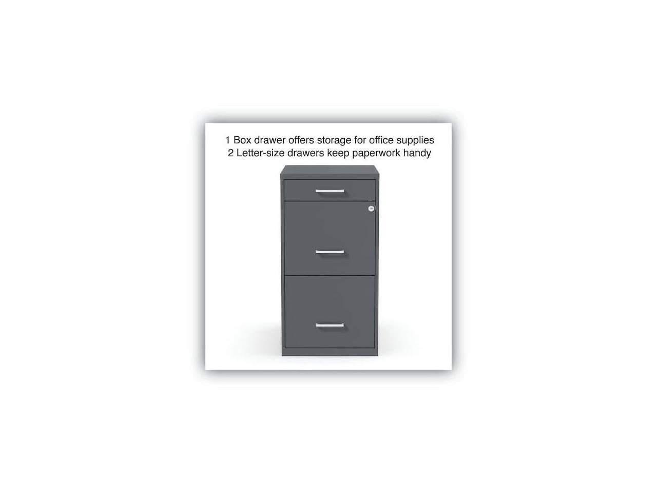 - Three-drawer light duty filing cabinet holds letter size documents