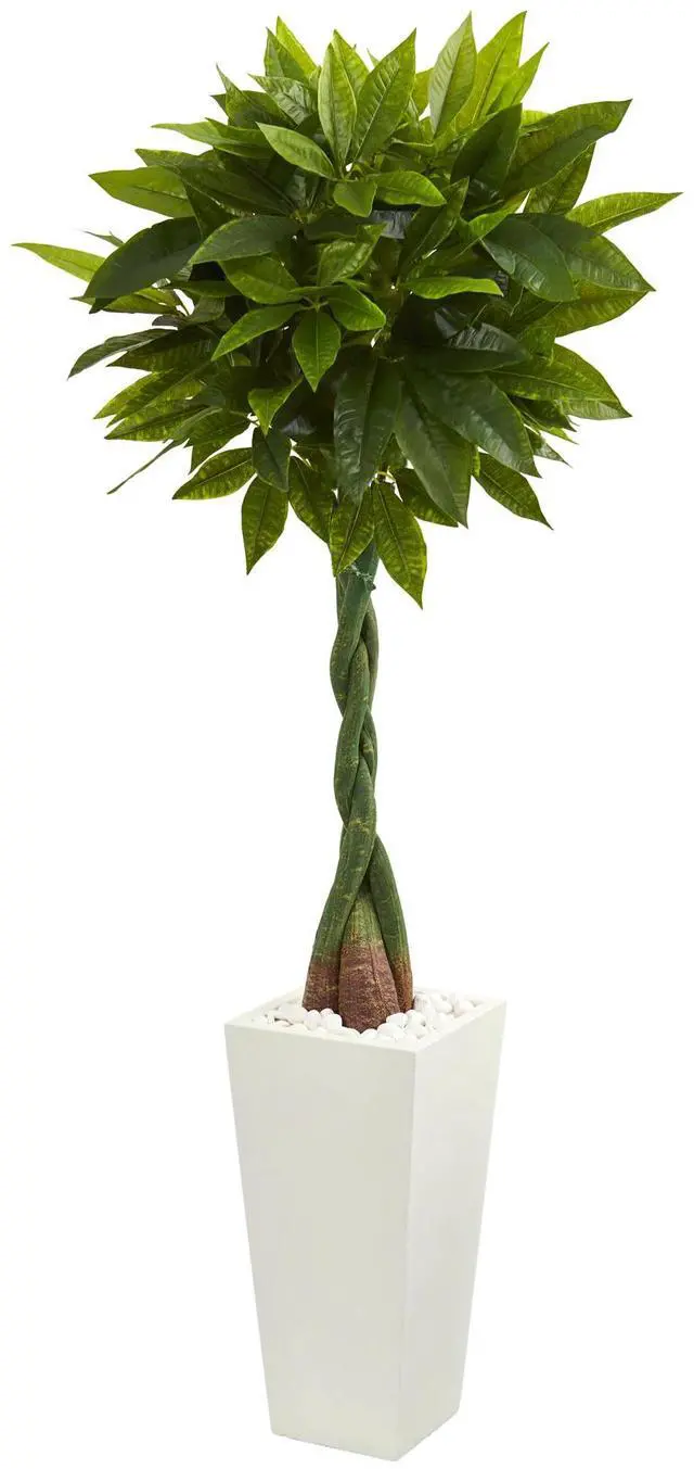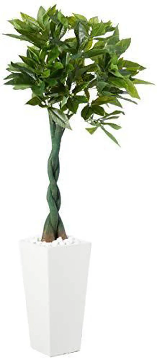 With an attractive flourish of rich real to the touch green leaves exploding from a beautiful braided trunk and designed to look real- the artificial money tree is a natural choice for office decor. It comes in a white tower planter with natural river rocks- ready to be placed somewhere it can be seen as soon as someone crosses the threshold.