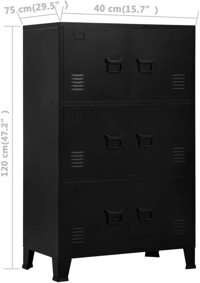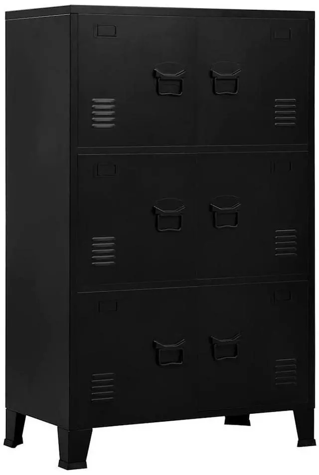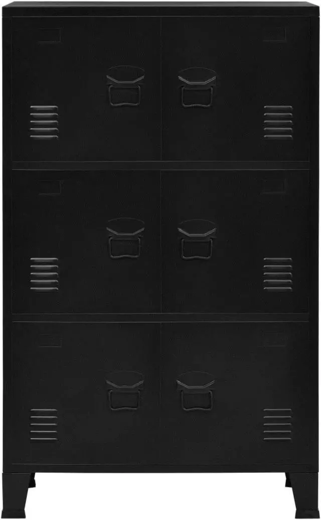 This chest is made of metal, making it sturdy and stable. The storage cabinet has 6 doors, providing ample storage space to keep your items organized and within reach. Each door is equipped with a name tag holder and air vents, which allow you to neatly sort your items into different categories and underline the industrial look. Additionally, it is easy to clean with a damp cloth.