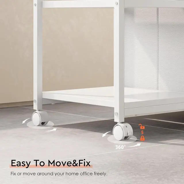 [Easy Mobility] Mounted on four wheels, this printer stand can be moved and repositioned effortlessly. The two front casters feature built-in brakes, ensuring stability and preventing unwanted movement