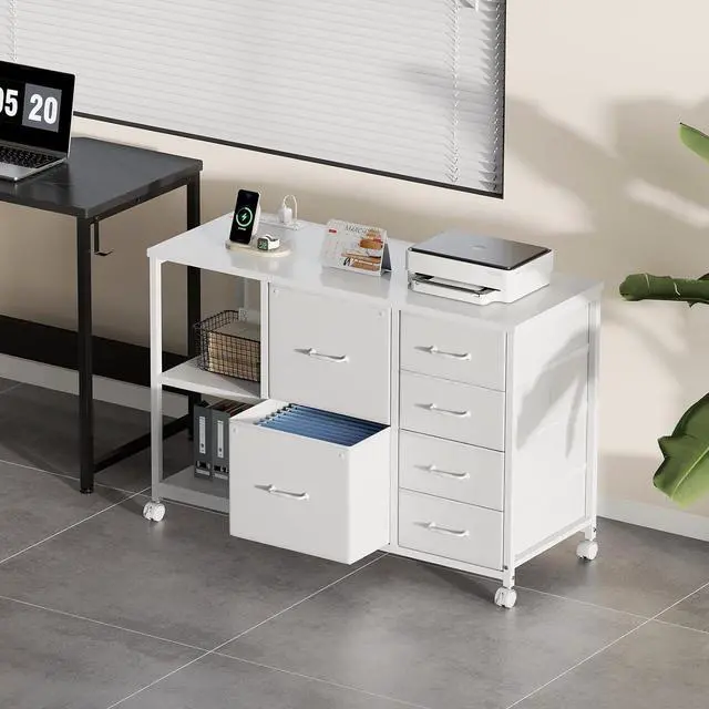 [Charging Convenience] Equipped with a 59" power cord, 4 outlets, and 2 USB ports, this filing cabinet addresses the issue of limited or distant power sources. It allows you to conveniently power multiple devices, such as printers, scanners, and computers, all at once