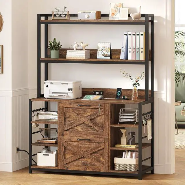 File Cabinet with BookshelfThe filing cabinets for home office is equipped with 6-layer open storage shelves, providing ample storage space for office supplies, allowing you to arrange files and decorations in a stylish way. Equipped with 8 hooks on the side, you can hang briefcases, mugs, headphones, umbrellas, etc.