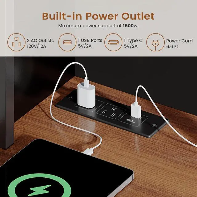 File Cabinet with Charging StationThe filing cabinets for home office is equipped with 2 outlet and 1 USB port and 1 type c to power up to 4 devices at the same time. Power outlet allows you to charge cell phones, tablets, notebooks, etc. This 41 inch long desktop offers a spacious workstation for your home office.