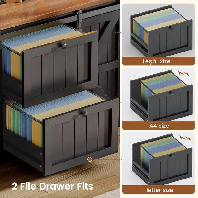 2 Drawer File CabinetThe lateral file cabinet with 2 drawer file keeps hanging letter, legal, A4 size hanging file folders or other home office items. There is 3 adjustable space of drawer and you can choose file hanging bar to hold legal size, letter size or A4 size. This file cabinets 2 drawer is perfect for home office, workplace to keep your files at close.