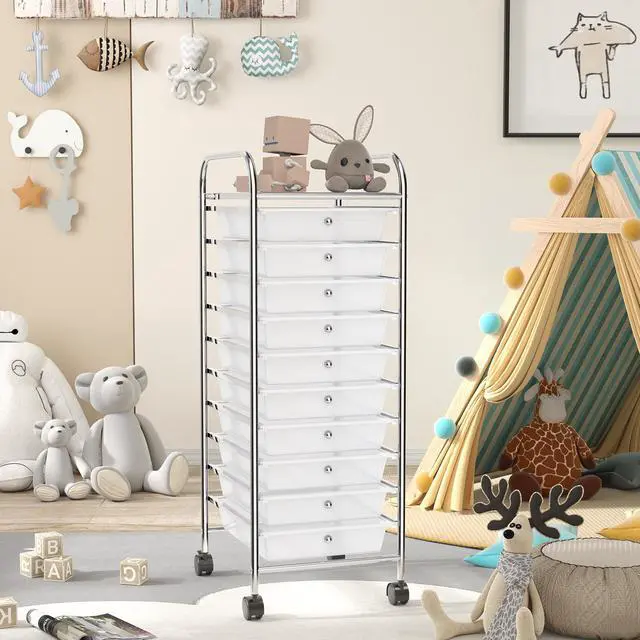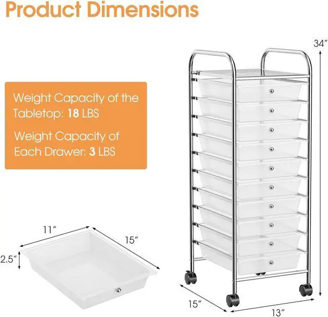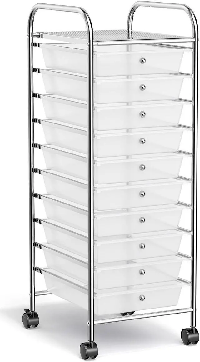Ample Space for Storage and Classification: There are ten drawers in total for to store and classifying your stuff. Table top can also be used for putting stuff on.