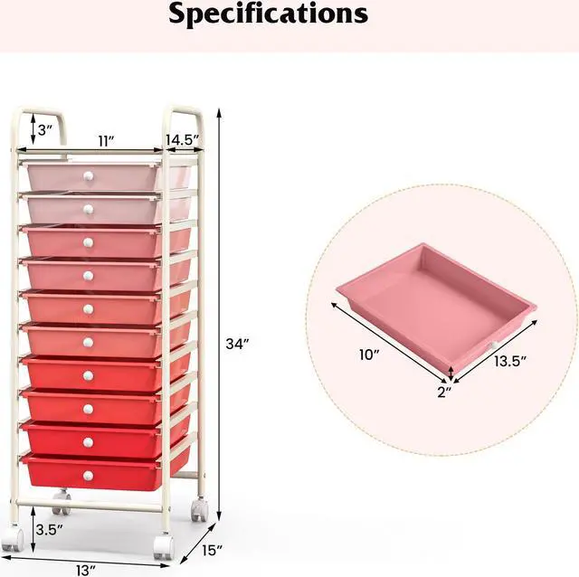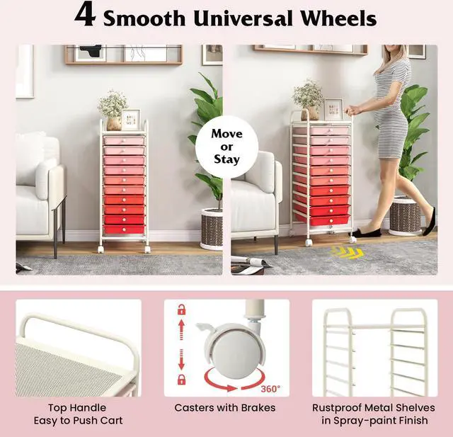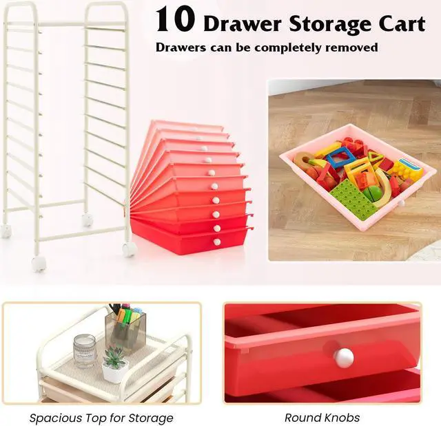 Ample Space for Storage and Classification: There are ten drawers in total for to store and classifying your stuff. Table top can also be used for putting stuff on.