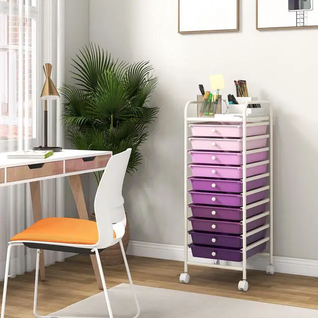 SlickBlue 10 Drawer Rolling Storage Cart Organizer with 4 Universal Casters-Purple