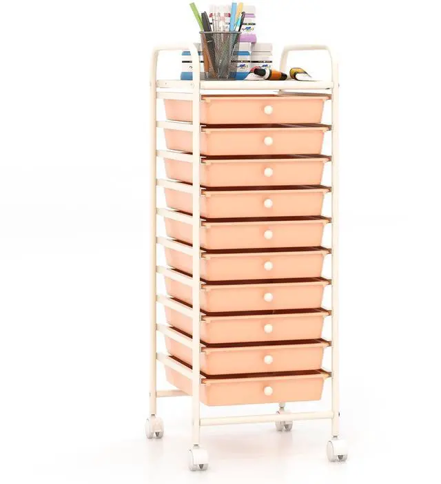 SlickBlue 10 Drawer Rolling Storage Cart Organizer with 4 Universal Casters-Cherry