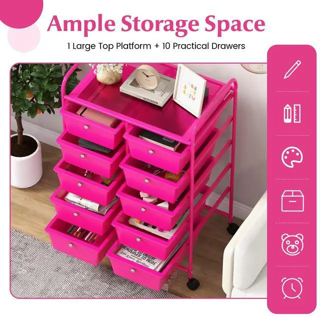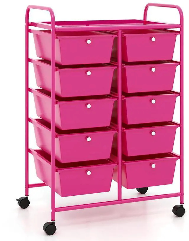 SlickBlue 10-Drawer Rolling Storage Cart-Pink