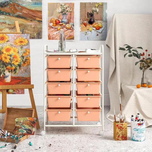 SlickBlue 10-Drawer Rolling Storage Cart-Peach