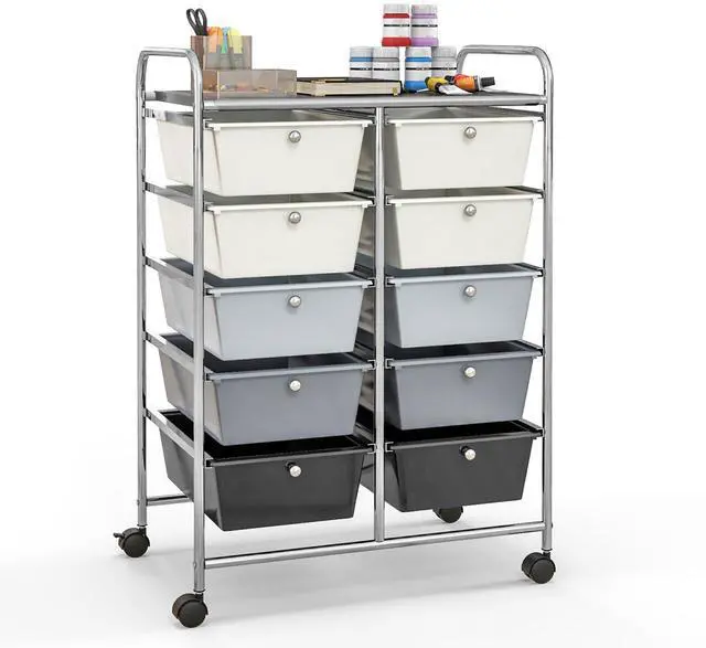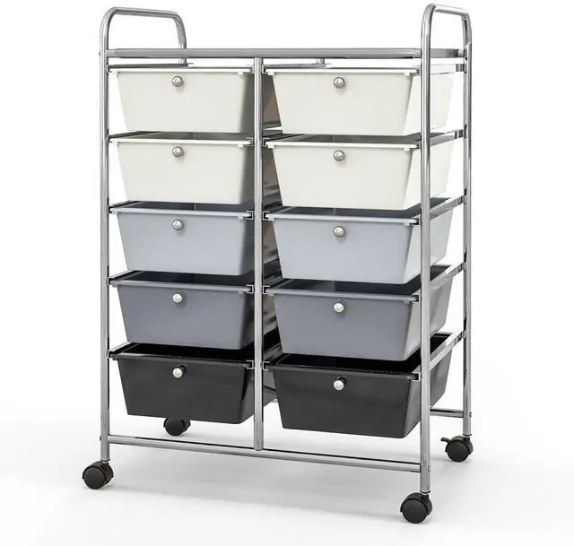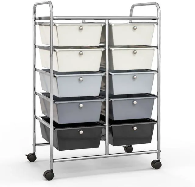 SlickBlue 10-Drawer Rolling Storage Cart-Beige & Gray