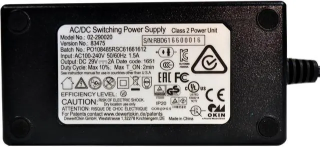 Okin 29V 2A Replacement power supply transformer for an electric recliner or lift chair. Okin Class 2 Power Unit. The 2 Pin outlet cord on the transformer is 6 inches and requires a standard AC cable (sold separately). A solid replacement for your chair's power supply.