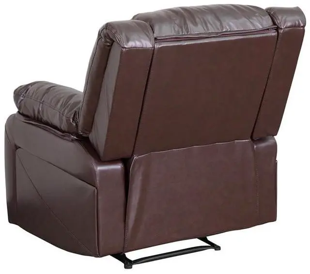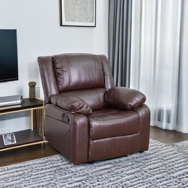 Superbly comfortable and exceptionally stylish, this recliner is the perfect complement to any contemporary living space. This brown recliner, boasting soft microfiber upholstery, offers the perfect balance of relaxation and comfort with generously padded arms and a plush pillow back cushion. Insert your streaming device into your projector, unroll the screen, and enjoy that big screen movie feel right in your living room. Reclining furniture offers the best in relaxation for you to kick up your feet to watch TV, work on a laptop, or to just hang out with family and friends. Recliners provide great neck and lumbar support, making them the most popular seating choice for everyday use. The casual design of this recliner will make it a great addition to your living room or family room to relax or to just hang out.Product Dimension-31"W x 31" - 64"D x 26" - 36"H