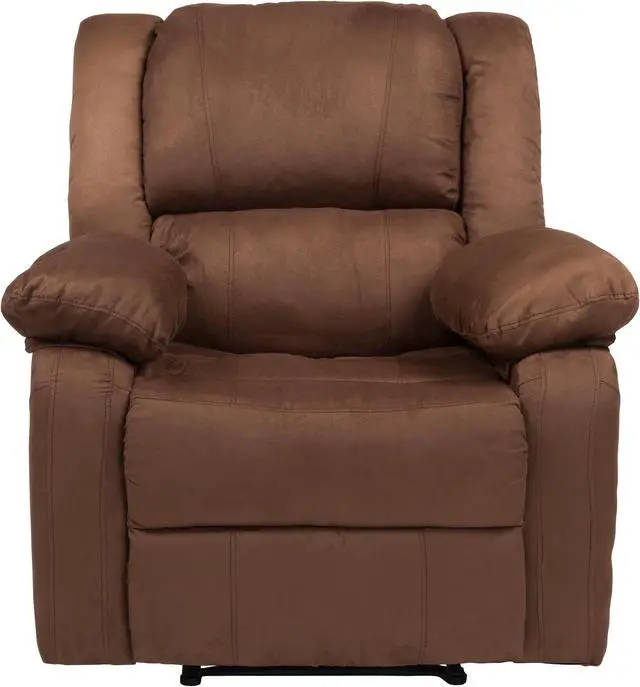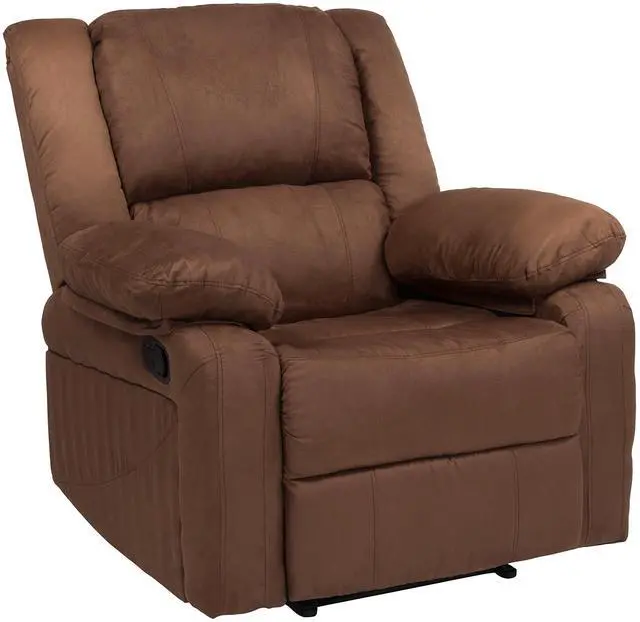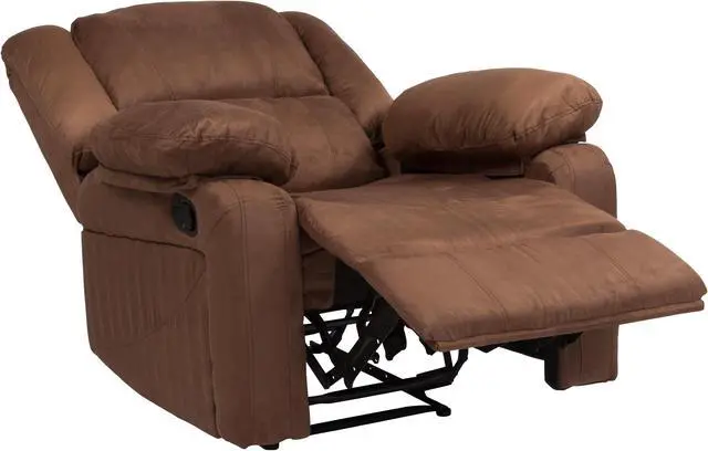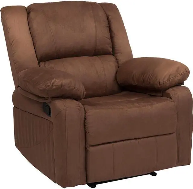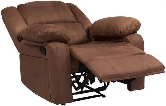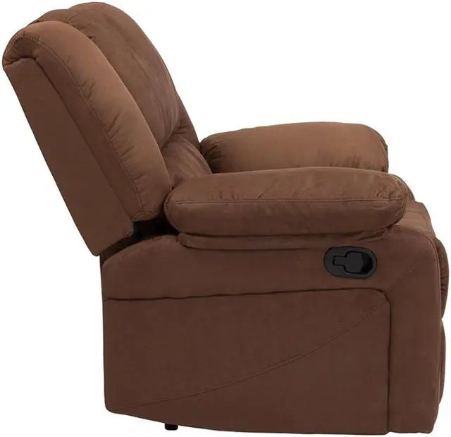 Superbly comfortable and exceptionally stylish, this recliner is the perfect complement to any contemporary living space. This brown recliner, boasting soft microfiber upholstery, offers the perfect balance of relaxation and comfort with generously padded arms and a plush pillow back cushion. Reclining furniture offers the best in relaxation for you to kick up your feet to watch TV, work on a laptop, or to just hang out with family and friends. Recliners provide great neck and lumbar support, making them the most popular seating choice for everyday use. The casual design of this recliner will make it a great addition to your living room or family room to relax or to just hang out.