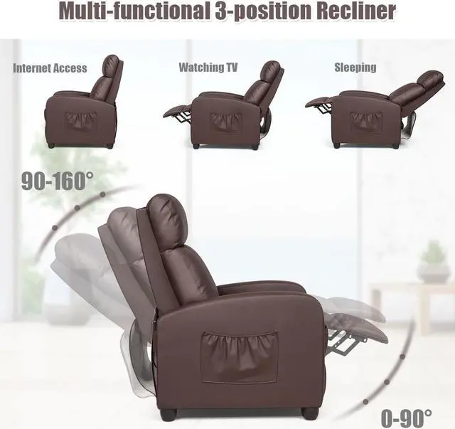 The massage chair is using 2 vibrating massage nodes and 8 massage modes to provide you with a superior massage experience for your lumbar. Equipped with a convenient remote control and a side pocket, it can be simply adjusted to your desired massage needs. Further, 90-160 degrees adjustable angles in 3 fixed positions are added for sitting or lying comfortably when reading, watching TV or having a simply rest.it is ideal for anxiety and tiredness relief, especially suitable for those working for long sessions. If you are looking for a massage chair to go in your living room, bedroom, home theater or even your office, this is the best choice! Don't hesitate to buy it!