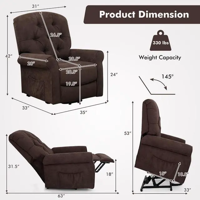 Package Includes: 1 x Power Lift Chair,1 x Remote Control,1 x Power Cord,1 x Instruction.
