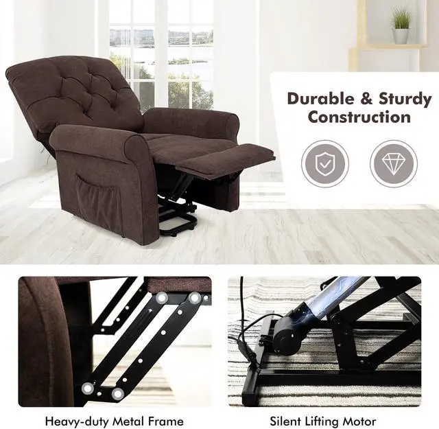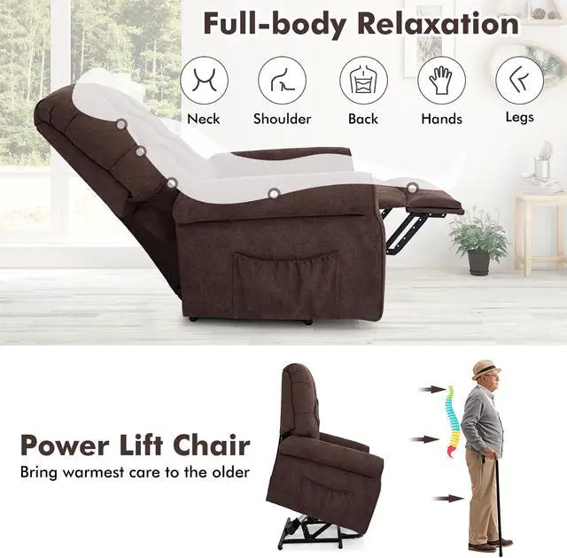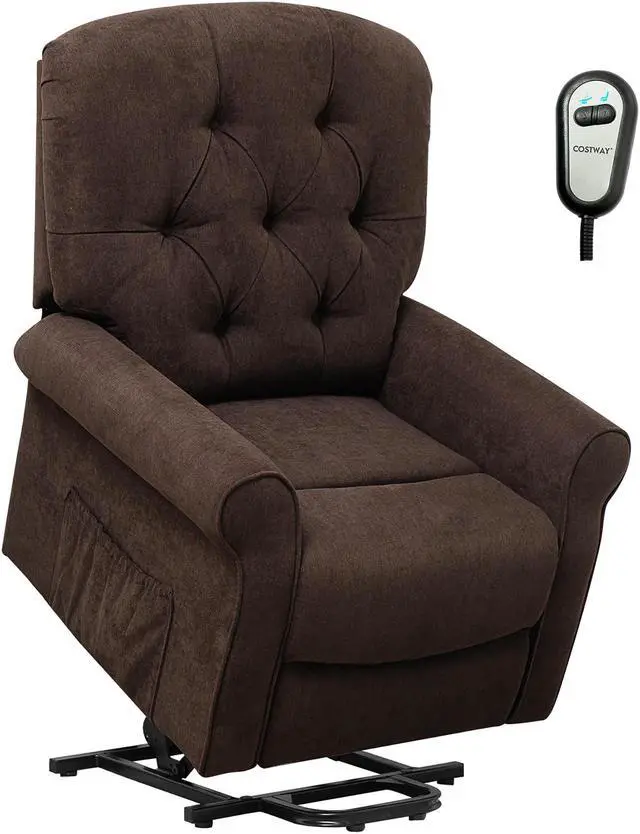 Costway Power Lift Recliner Chair Sofa for Elderly w/ Side Pocket & Remote Control Brown