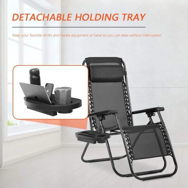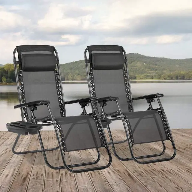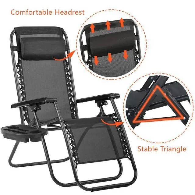 Zero Gravity Chair Seat Adjustable Patio Lounge Recliner Chair Set of 2 with Cup Holders Pillow for Patio Outdoor Yard Beach