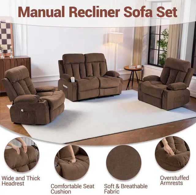 3 Piece Manual Recliner Sofa Set