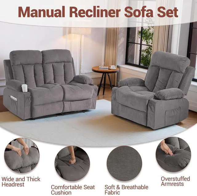 2 Piece Manual Recliner Sofa Set