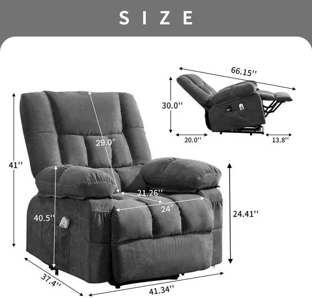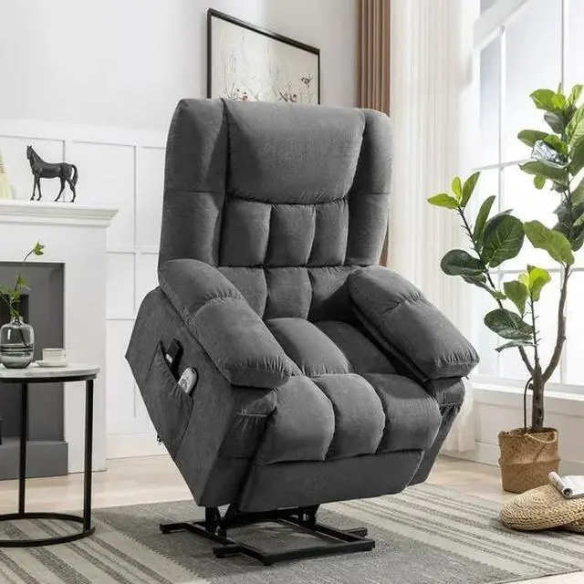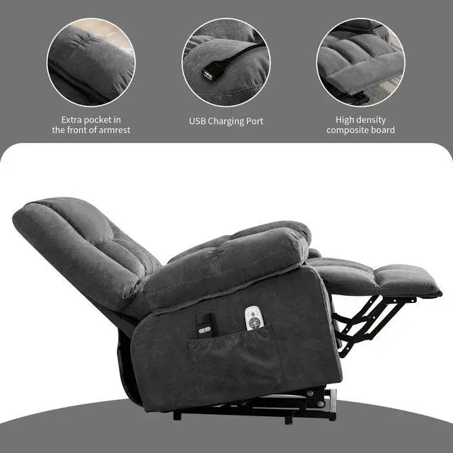 JONPONY Power Lift Recliner Chair Recliners for Elderly with Heat and Massage Recliner Chair for Living Room with Infinite Position and Side Pocket,USB Charge Port, Oversized-Grey
