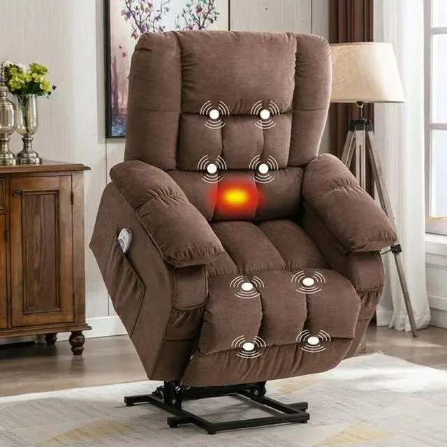 JONPONY Power Lift Recliner Chair Recliners for Elderly with Heat and Massage Recliner Chair for Living Room with Infinite Position and Side Pocket,USB Charge Port, Regular-Brown