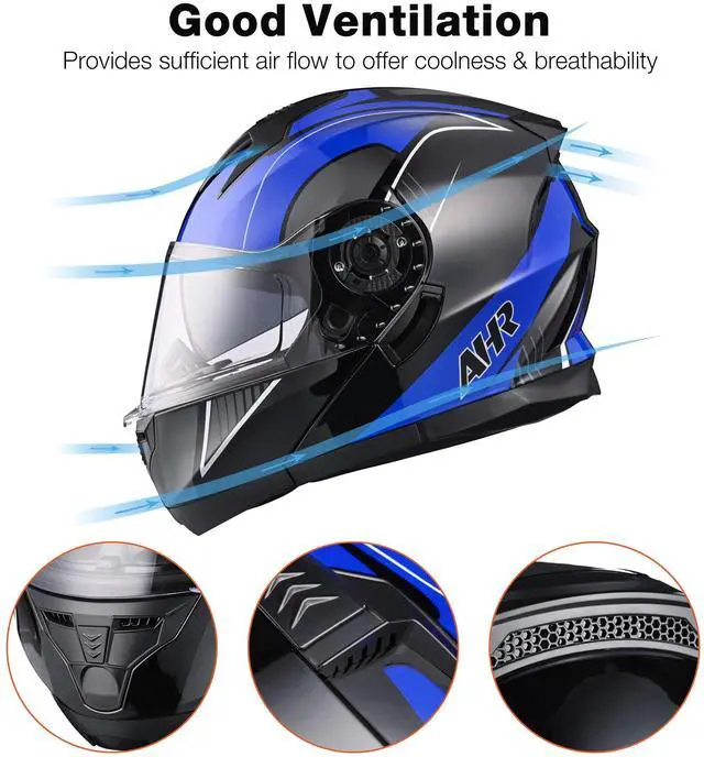 - Modular & Aerodynamic Design - AHR RUN-M3 Modular Flip Up Helmet features a streamlined and aerodynamic design for a sporty and cool appearance, while reducing wind drag for smooth and comfortable riding, ideal for motorcyclists to use in daily rides, ATVs, motocross or dirt bikes, etc.