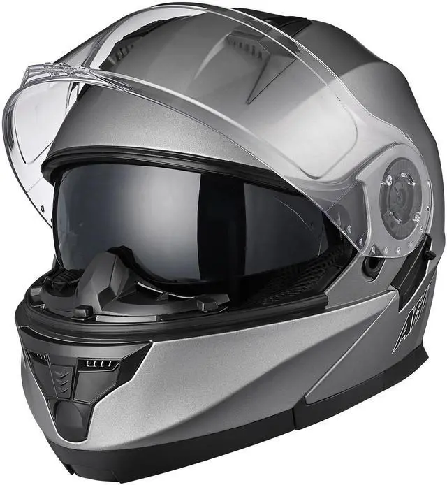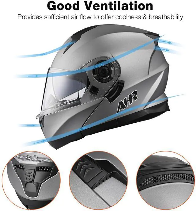 - Dynamic Design Helmet - AHR RUN-M3 Modular Flip Up Helmet features dynamic streamlined design with stylish pearl silver, making it never out of date; Flip up design for convenient phone talking or smoking; Suitable for motorcyclists to use in daily rides, ATV, motocross or dirt bike, etc