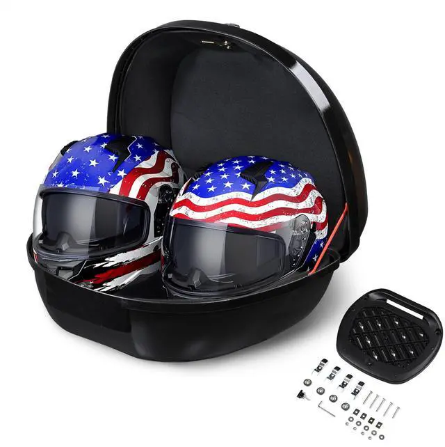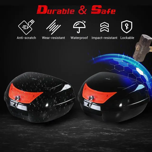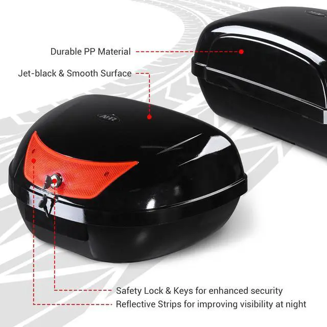 - Durable & Safe - Made of high-quality sturdy PP material, this motorcycle top case provides resistance to water, wear, scratches, and impact, ensuring a long lifespan and easy cleaning. Safety lock with 2 keys protects your personal items, while soft lining provides cushioning and shock absorption
