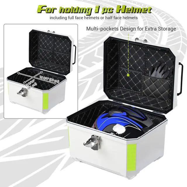 - Large Capacity & Multi-functional - 16"x14"x12" AHR Motorcycle Tour Tail Box features 45L large storage capacity and multi-pocket lining, spacious enough to store 1pc full face/half face helmets, gloves, air pumps, motorcycle covers, laptops, cameras, motorcycle repair tools, travel toiletry bag, raincoats, etc., suitable for commuters or travelers