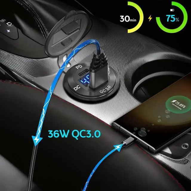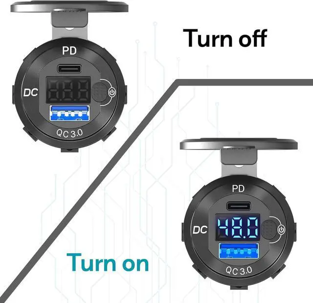 The switch is a push-button anti-slip switch, which is more stable than the touch switch and less susceptible to external interference. The switch controls the voltage display and two USB port outputs.