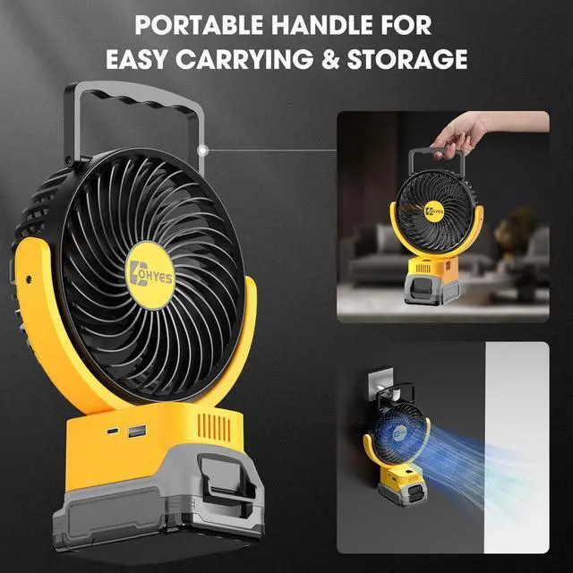 Cordless 5IN Jobsite Fan Fit For DeWALT 20V Max Battery Brushless Motor Variable Speed USB Fast Charging For Camping and Workshop (Battery not included)