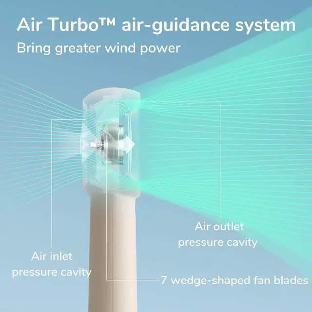 Patented Turbocharged Airflow: JISULIFE Handheld Turbo Fan has 2 vortex tech patents: Air Turbo and Air Jet. The airflow is accelerated and compressed by the air duct turbine, the wind is stronger, and the wind feeling is closer to nature