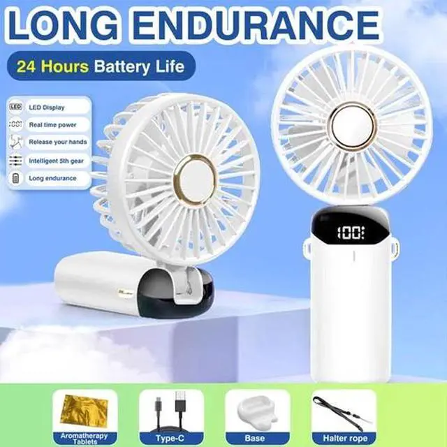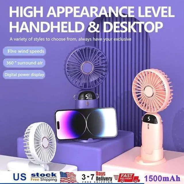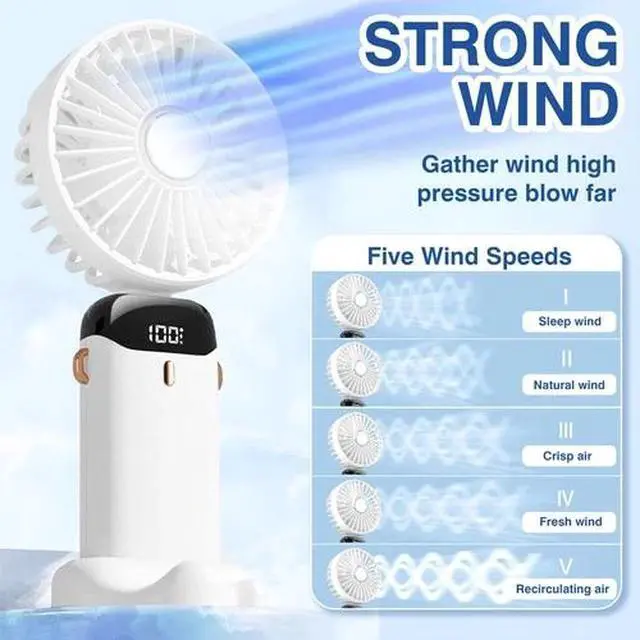 - [3-Stage Transformable Fan]3-stage transformable design allows for easy storage with hidden blades, making it compact enough to carry in your pocket. Use it as a handheld fan at 180° fold or as a desktop fan at 270° fold for added versatility.