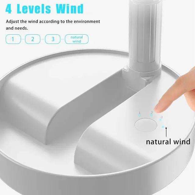 - Click the switch to display the power; double-click the switch to turn on the fan 1, 2, 3 gear is wind speed adjustment, 4 gear is natural wind.