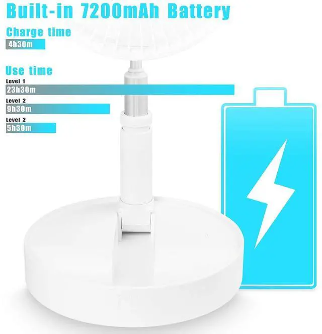 AICase Folding Fan Mini Telescopic Fan Pedestal Stand Portable Travel USB Rechargeable Table Floor Fan