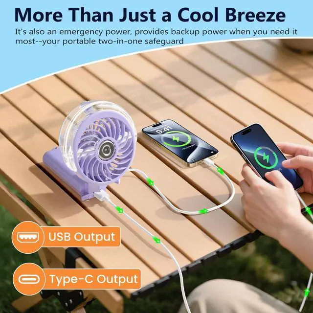 This fan allows you to charge multiple devices simultaneously. Whether you have an iPhone, Android phone, tablet, or any other USB or Type C compatible device, this fan has got you covered. No more worrying about running out of battery while enjoying the refreshing breeze.