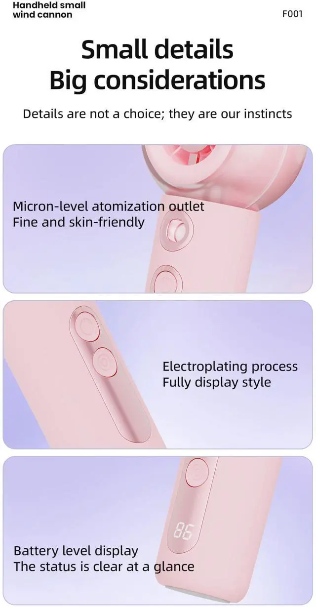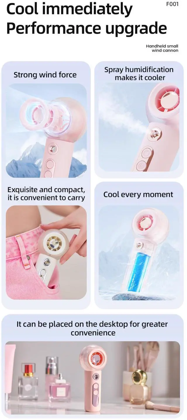 TLANMOK Lollipop-shaped High-Speed Handheld Mist Fan - Pink, Cute Design 4 Speed Personal Handheld fan, Lightweight USB Rechargeable for Travel Lash Makeup Girl Women Summer Gift Pink