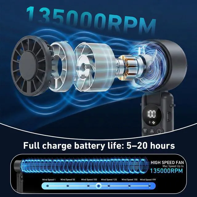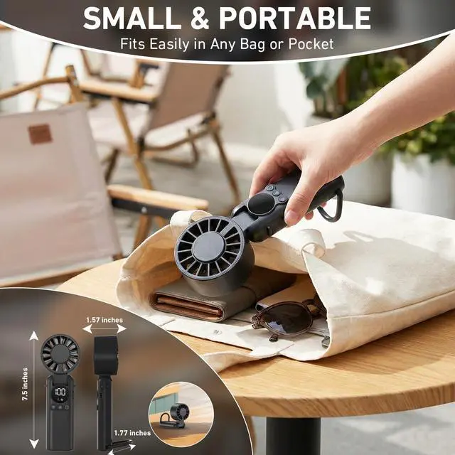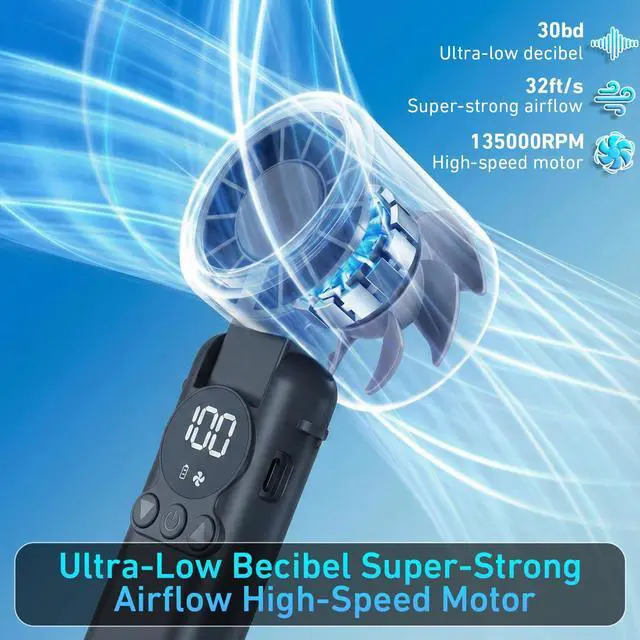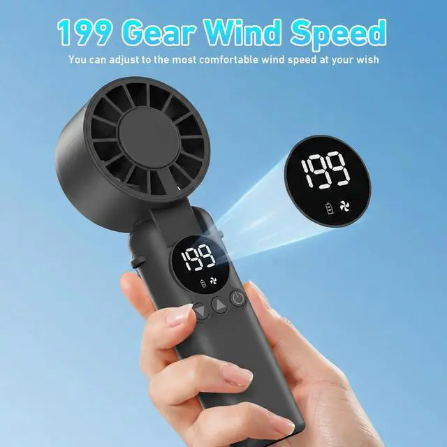 Powerful Turbo Motor & 199 SpeedsExperience the ultimate cooling with our portable handheld fan. Equipped with a high-speed brushless motor and unique 7-blade design, it delivers wind speeds 3x stronger than ordinary mini USB fan. Featuring an incredible 199 adjustable speed gearsfrom a gentle breeze for a girl doing makeup to a turbo storm for boys outdoor work. This battery powered personal fan ensures everyone, from women to men , stays perfectly cool during hot travel or commutes.