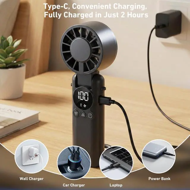 Smart LED Display & Fast ChargingStay fully informed with the smart LED digital display on this personal fan. Check real-time battery level and current speed gear at a glanceno more sudden power-offs! When it's time to recharge, the USB-C fast charging gets you to full power in just 2-3 hours. Perfect for girls and boys who need reliable performance, this rechargeable mini fan ensures you're always ready for daily travel or school.