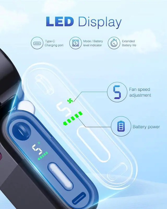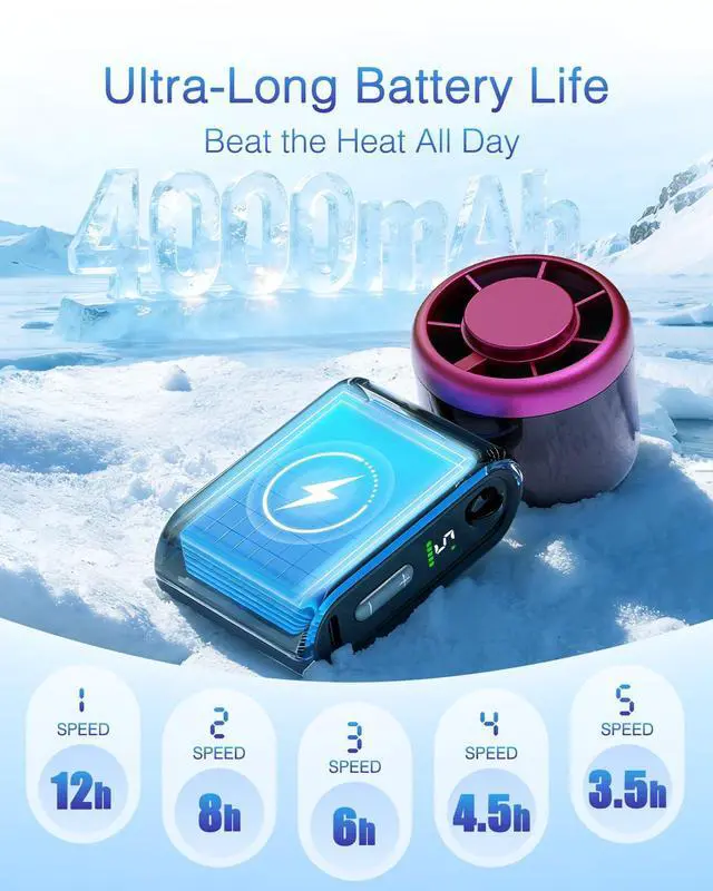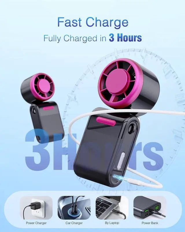 Long Battery Life & Portable ChargingThis rechargeable portable fan with a 4000mAh battery is a must-have for travel and outdoors. It provides up to 12 hours of use and is compatible with USB ports, laptops, power banks, and car chargers. Never worry about battery life again.
