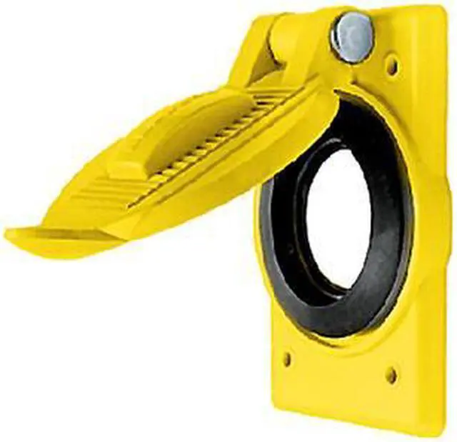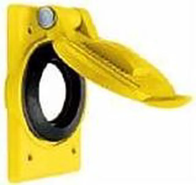 Weatherproof Cover, Mounting Box FS or FD Weatherproof Boxes, For Use With Single 15 and 20A Straight Blade Receptacles and 15A Twist-Lock (R) Receptacles, Mounting Orientation Vertical, Lid Style Self Closing, Number of Gangs 1, Gasket Material Neoprene, Cover Material Polycarbonate, Color Yellow, Height 4 9/16 in, Width 2 55/64 in, Standards CM, UL Listed, Includes Mounting Screws. This item has been restricted from sale in the following state (s): []