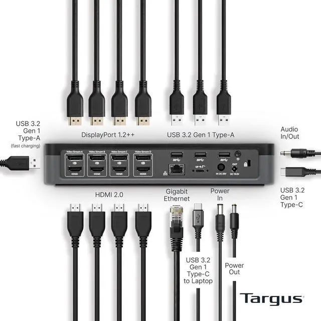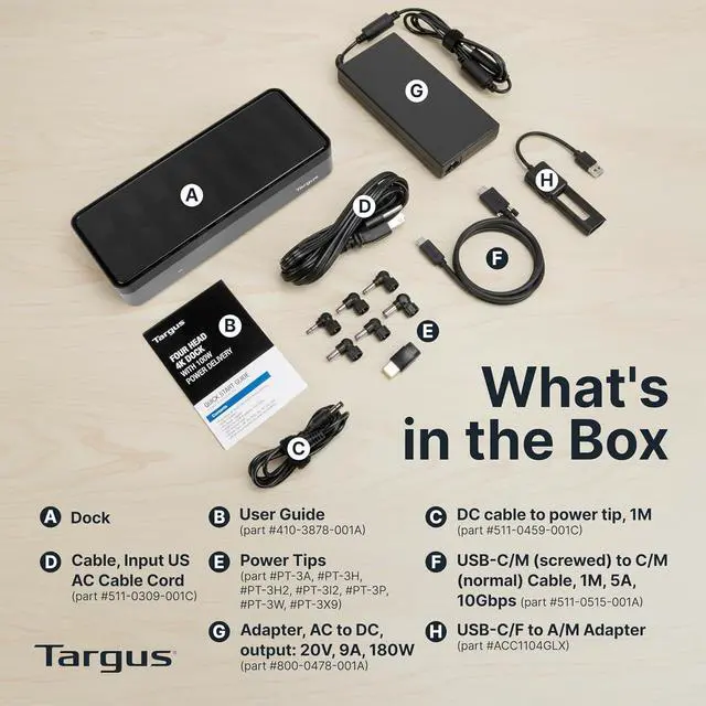 USB-C UNIVERSAL QUAD 4K DOCKING STATION - Expand your workstation and connect to virtually any laptop with this QV4K laptop docking station with Power Delivery 2.0 up to100W. Includes power tips for legacy hosts: Acer/ASUS/ Dell/HP/Lenovo and more