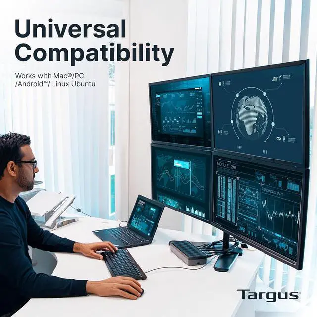 ADDITIONAL FEATURES - This dock features an integrated lock slot that accommodates standard security locks to safeguard equipment (lock sold separately) and is also compatible with Targus VESA Mounting Bracket (sold separately)