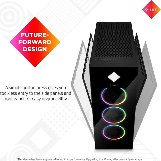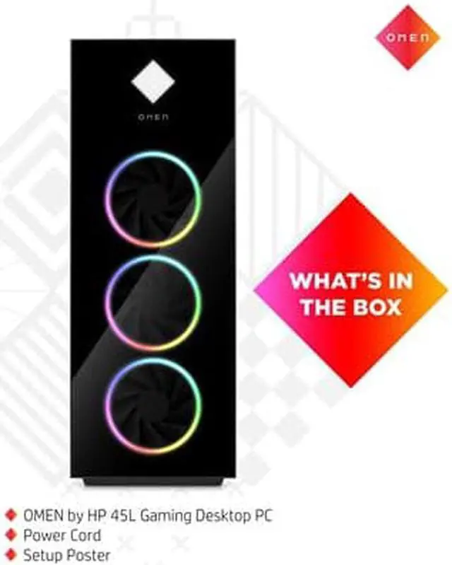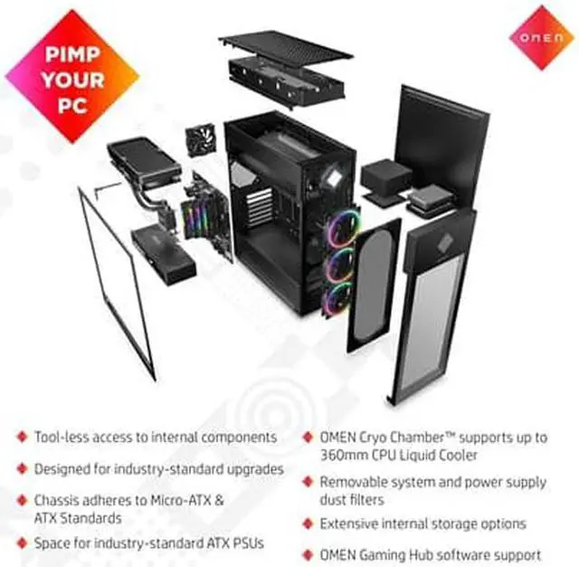OverviewBuilt for extreme performance, the OMEN by HP 45L Gaming Desktop PC is designed for gaming from the ground up. Powered by the latest Intel® processor, the OMEN by HP gaming desktop takes cooling to incredible heights with a unique cooling chamber. Created for easy tool-less upgradeability with industry standard components to meet your gaming needs. FeaturesOMEN Cryo ChamberEnables the liquid cooler radiator to pull-in cold air from the surrounding environment to cool down the CPU. Crafted for expansionEasily upgrade and expand the memory, storage drives, and interior expansion slots to fit your gaming needs.