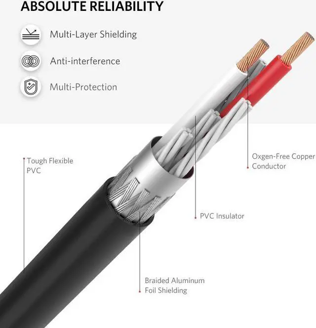 High Pure Copper & Double Shielding: Stereo 3.5mm Male to 2 RCA Female Cable is made of copper, ensuring high fidelity sound quality and providing maximum's conductivity and durability.
