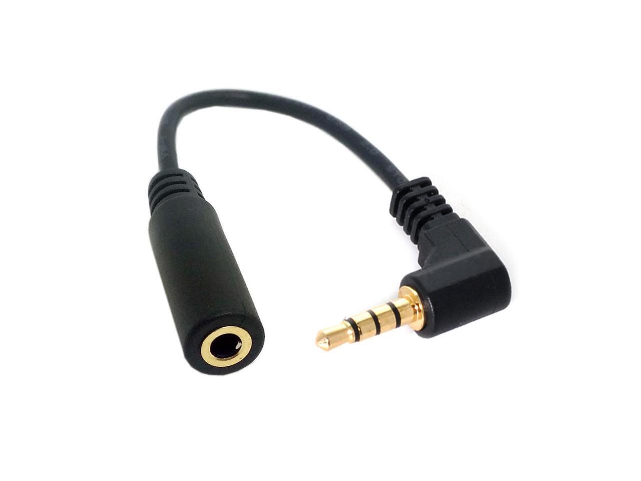 FVH 90 degree right angled 3.5mm 4 poles Audio Stereo Male to Female Extension Cable 10cm Black RC-003