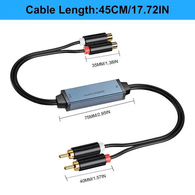 RCA Ground Loop IsolatorThis noise filter for car and amplifier audio eliminates humming and alternator noise, improving sound clarity for car audio systems and amplifier audio; ensures a quality listening experience.