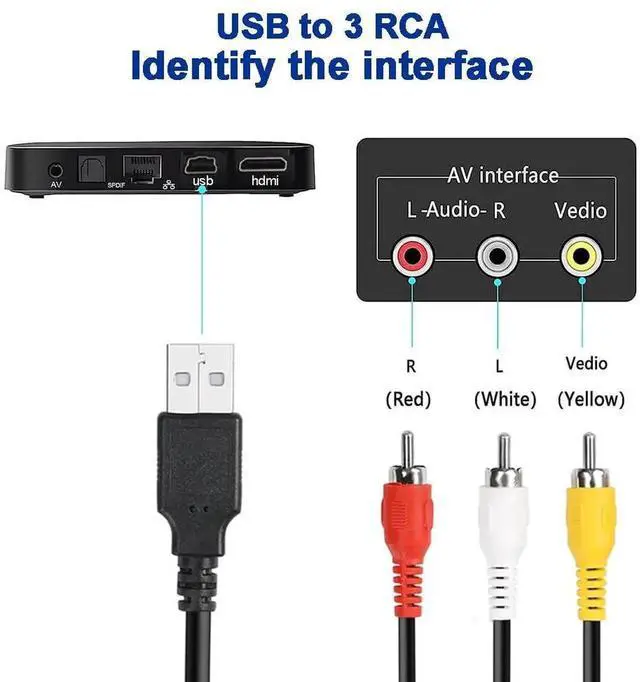- [Meet your needs]: This USB to RCA cable allows you to view pictures and videos from camcorders on your USB-enabled television or on your PC. And attention that this cable can't be directly transferred from PC, laptop, DVD, PS4,PS3, xbox and other devices with HDMI interface to TV. please make sure both devices have signal coding and decoding function, otherwise an usb to RCA converter is needed.