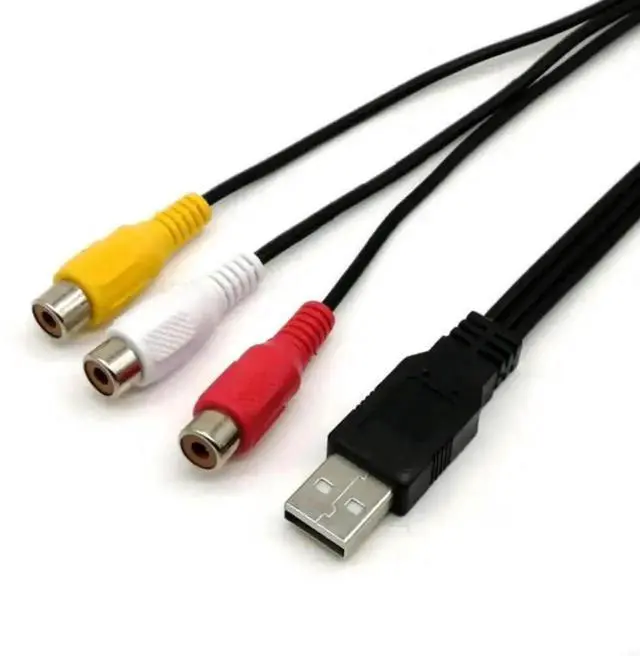 1pc USB Male Plug To 3 RCA Female Adapter Audio Converter Video AV A/V Cable USB to RCA Cable for HDTV TV Television Wire Cord